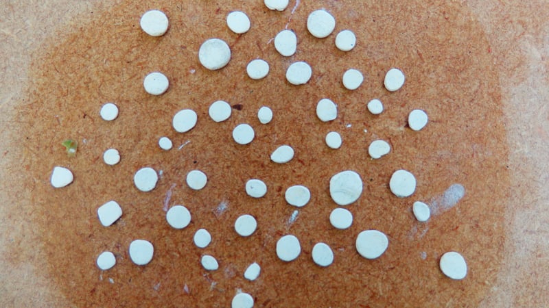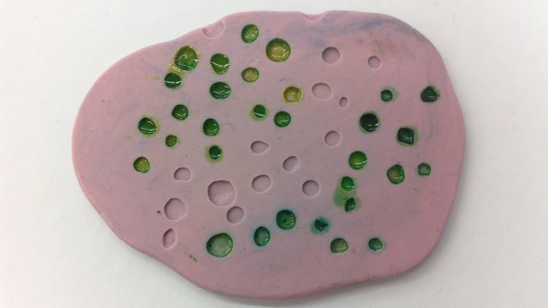 Fillers were also added to the resin in order to match the translucency of the original shagreen. Finely ground pumice powder, colloidal silica, whiting and glass microballoons were all tested. The colloidal silica gave the best effect, with the whiting tending to create a less even, grainy mixture with the resin, and the microballoons collecting in the centre of the "scale."