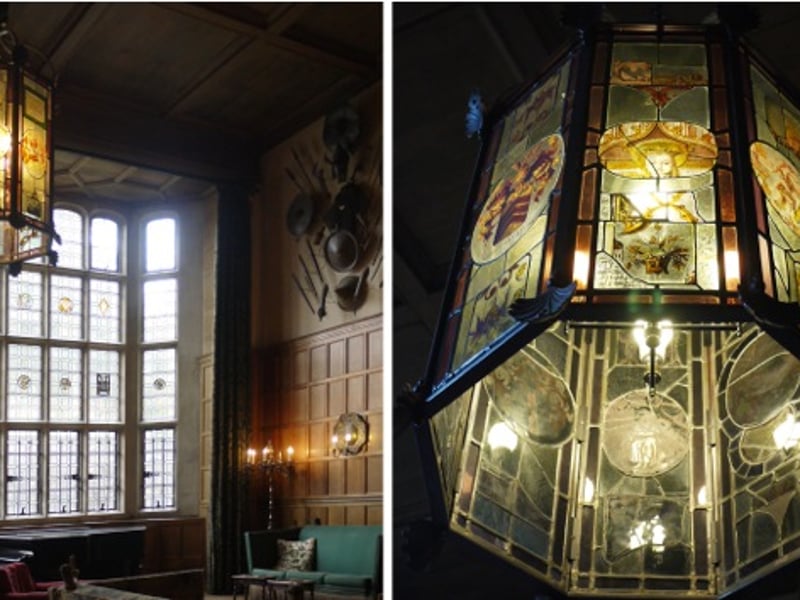 When asked I always say that the inspiration for my own glass came from looking at examples of old stained glass. I worked out why certain techniques and design features were used and this enabled me to invent my own way of doing things using modern methods and contemporary imagery. West Dean House is the perfect place to find some of this inspiration. I have three examples below showing different periods of stained glass at West Dean with examples of how they link to the work of my students on this winter's course.