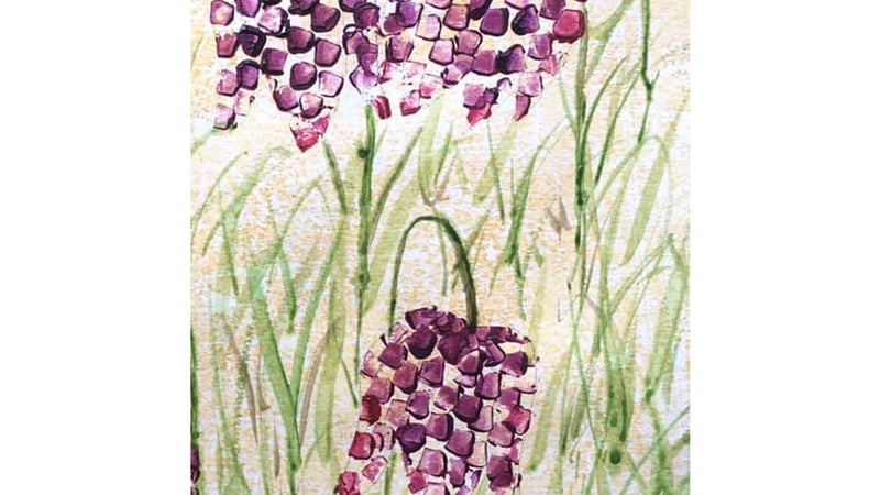E) Rather than a representational study, how about abstracting the information from the photograph? Use colour inspired by the purple and greenish-yellow, overlay with mark making inspired by the pattern on the petals, contrasting with the spiky grass fronds and the flowing shapes of the flower form. Complementary colours are at work here. Think about catching the vibrant colours, textures and form to unleash your creativity. Use any paint medium. There is a freedom in creating abstract art - it leaves room for intuition, serendipity and playfulness.