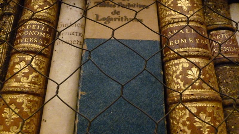 My photos from the Lincei library are all of the collection, which we saw before the conservation lab and before my camera's SD card started acting up. The library's site does a better job than I'll ever do of describing the collection, so I'll leave it to you to get all the details straight from the horse's mouth, but briefly: the Accademia dei Lincei---the Lyncean Academy---was founded in 1603 by Federico Cesi (you can read more about him & the Accademia here as well); Galileo joined in 1611. The Accademia collected and published books and amassed an important collection in all of the classical subjects. The library was donated to the people of Rome and the collection is publicly accessible in person as well as in several online digitization projects.