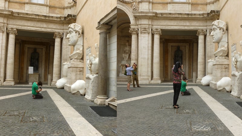 ____________________We had time for some adventures on our own, too. Here's Alex peacefully photographing sculptures in the Capitoline Museum, before a bunch of other tourists cottoned on to the idea: