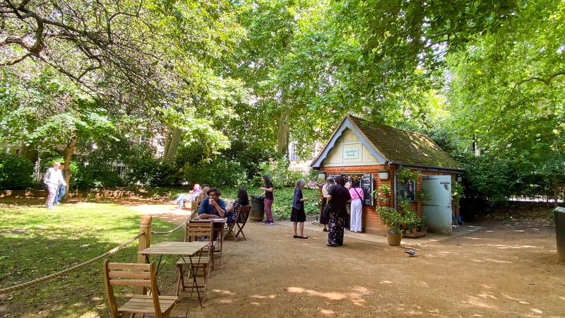 Brunswick Square Gardens: A tree-lined, leafy green space creating a tranquil atmosphere.
