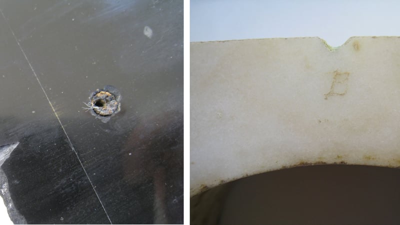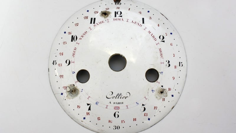 The enamel dial is also an object we are working on. There are three areas of loss need to be filled. We are going to use an epoxy resin to fill the areas and the numerals should be retouched.
