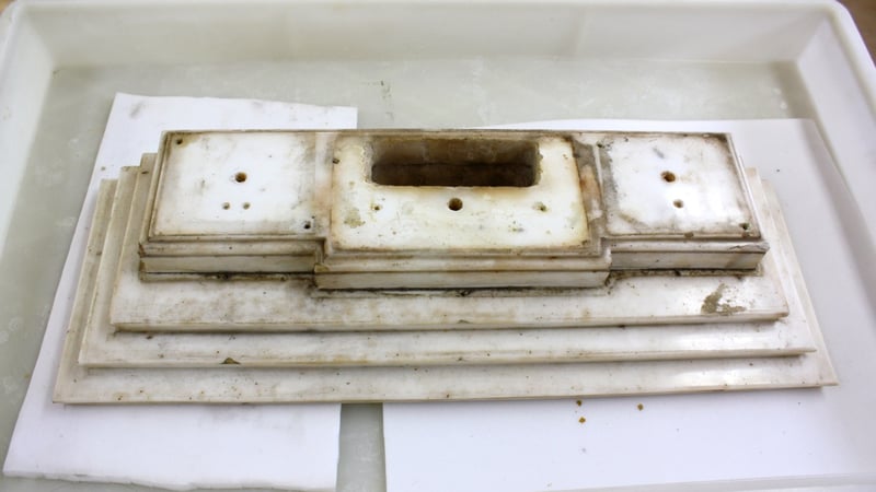 The ceramics department is working on 12 marble elements, a glass panel and an enamel dial.