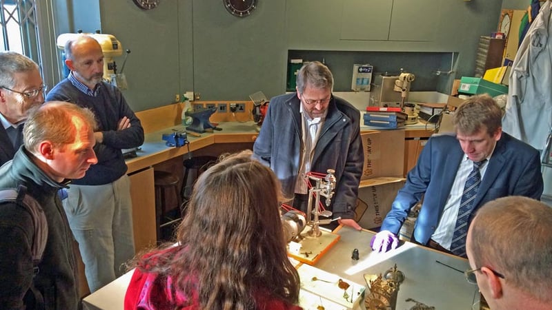 After our visit to the workshop, we went to the Flamsteed House Octagonal Room-the place where John Flamsteed, the first astronomer Royal, took many measurements of the stars and moon. Also included in the Octagon Room were famous clocks used by the early astronomers in timing their measurements. One such clock is a reproduction made by past West Dean Clocks student Johan Ten Hoeve.