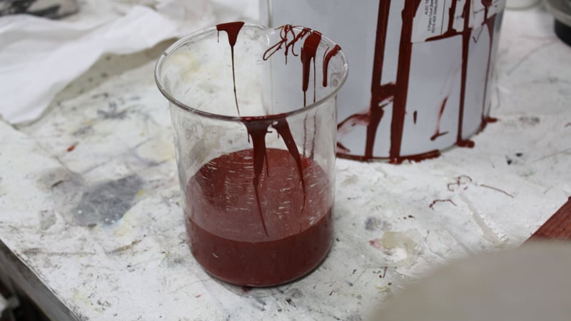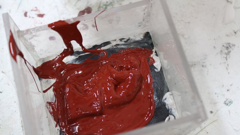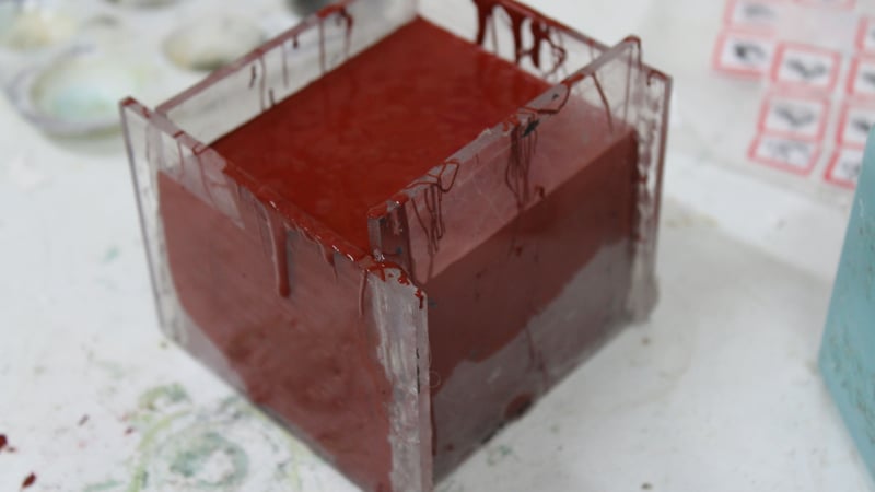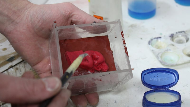 Before pouring all of the silicone, we used a brush to cover the eraser with a thin coat. This ensured every detail of the shape was covered.
