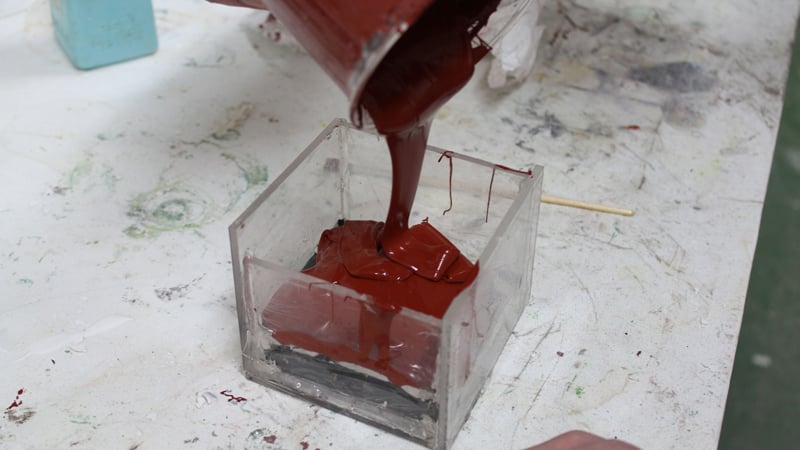 We then poured in the rest of RTV silicone and placed the mould container onto a vibrating plate for about two to three minutes. This was to take any bubbles out within the mould. Once done, we left it to set overnight.