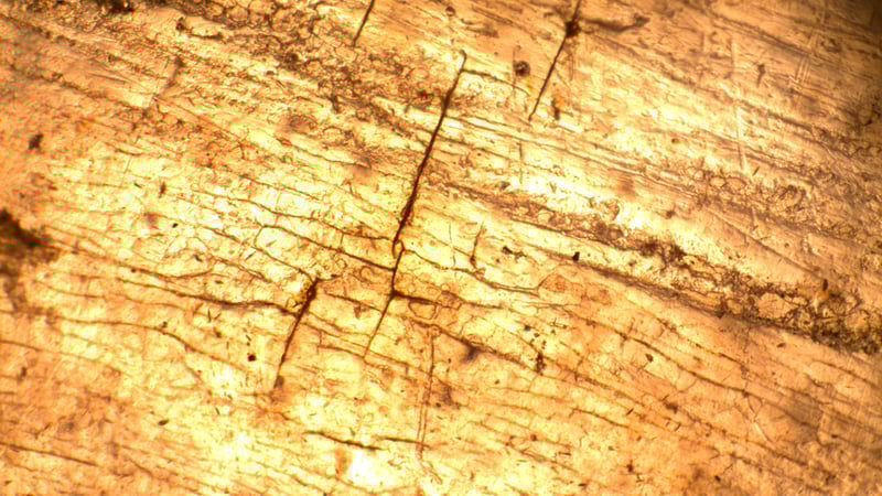 First I compared this plastic mother-of-pearl and real mother-of-pearl. Here you can clearly see the difference between the two materials, with the real mother-of-pearl showing characteristic iridescent interference colours (generated by thin layers of the mineral aragonite, a form of calcium carbonate.)