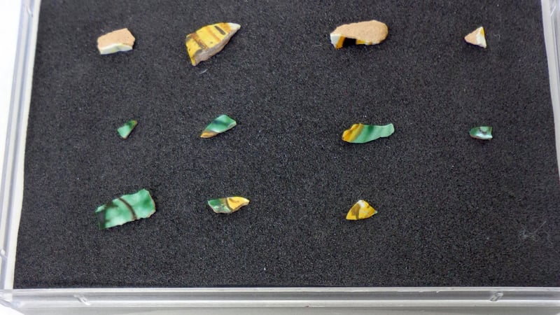 The tiny shards were laid out on Plastazote®, a closed cell, cross-linked polyethylene foam, so that they were accessible and easily identifiable and were able to be placed inside a plastic box during the rest of the process.