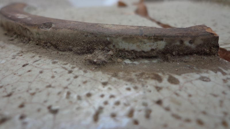One particularly difficult area was the break edge that followed the firing crack where glaze had partially filled the crack and dirt had accumulated. This needed to be approached with extreme care not to get any of the cleaning materials onto the break edge whilst removing the accumulated dirt, as I did not want it to impede the join when bonding.