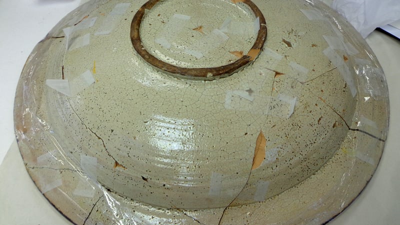 Once I had cleaned the object thoroughly, taking care not to contaminate the break edges as this could inhibit the bonding later, I would need to do a dry run to assess the completeness of the dish and establish a bonding plan.
