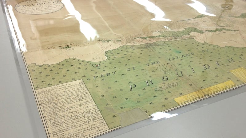 Once the entire chart was stabilised, I fashioned a Melinex folder using an HDS Keeper® ultrasonic welder. The folder gives a primary, unobtrusive layer of protection to the chart, suitable for both storage and transportation.