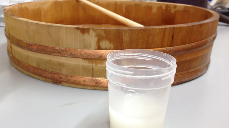 Jin Shofu wheat starch was cooked 10% w/v in water. After cooling and straining, the paste was carefully thinned down with deionized water, using a Japanese wooden mixing bowl and paste brush. This mixing had to be done quite slowly to avoid lumps. After reaching the consistency of skim milk, the paste was mixed with an equal amount of 3% w/v methyl cellulose.