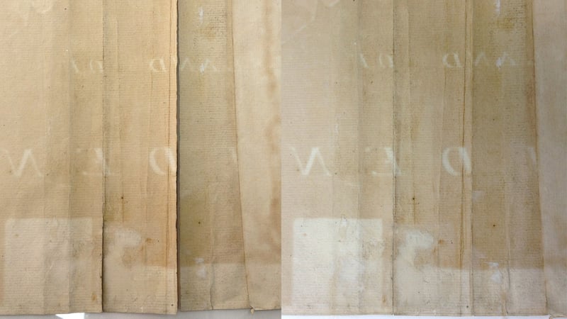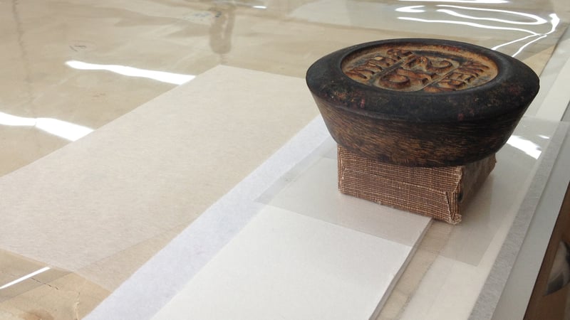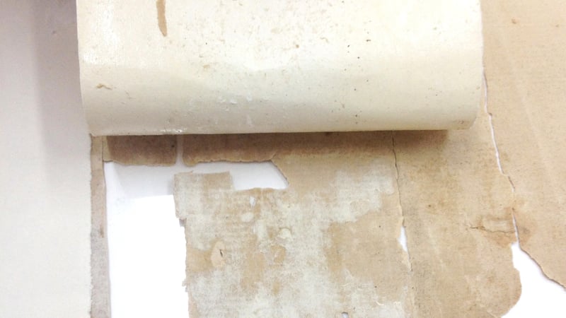 I then reattached any shards of the chart that I had found loose, using the same method. For these reattachments, re-moistenable tissue was applied to both sides of the chart.