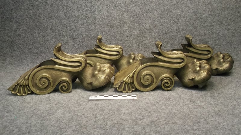 The process of cleaning involved multiple tests. The first was a spot test in an inconspicuous area with Triton X and white spirit. White spirit seemed to have more of an effect but wasn't removing the oxide. The result was indicative of a cross-linked protective coating as well as signs of multiple layers of wax, possibly microcrystalline, which would have been used to polish the surface. A waxy green copper corrosion product (due to moisture) was visible around screw holes. Random patches of white paint possible deposited by the local painter and decorator were also visible on top surfaces.