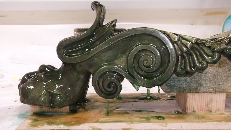 Once I had achieved an overall two-thirds clean appearance, it was a case of making a protective tinted coating that would complement the colours of the table that they came from. A final bristle brush clean ensured the removal of all cleaning agents, as leaving these on the surface will do damage over a long period of time.