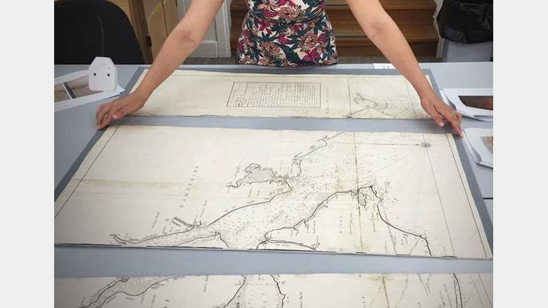 120cm x 85cm, while the map measures 120cm x 97cm. Therefore the