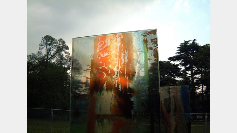 The notion of floating or being in limbo was also a consistent theme, evident in the interest in moving figures, masses in transit, forms falling through space or indeed slaves being stowed and shipped like manufactured goods. Carole's work was often an attempt to "trap a floating world", as she put it, even to the extent (in later works) of putting it under glass. An extension of the fabric-based pieces' combination of different levels of opacity and transparency, as well as with the example of frescoes being embedded into an existing surface, Carole began to develop installations that made use of industrial materials and processes to emphasise the kinds of polarities inherent in her work. By laminating designs between sheets of toughened glass, perspex or resin, she was soon able to explore the potential in trapping intuitive, transient marks in a transparent form that gave them architectural stability.