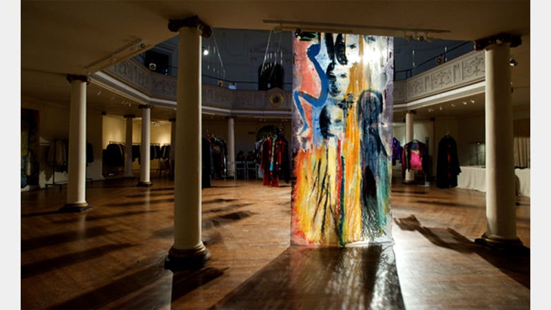 Having returned from the Easter break, the Visual Arts department was pleased to welcome Carole Waller as Visiting Artist shortly she had taught a Short Course in the Main House. During a presentation in the Old Library, Carole gave an overview of her practice, detailing its development and her commitment to producing diverse strands of work across different contexts - touching on the worlds of painting, fashion, sculptural installation and performance. There was also a lot of practical information and advice for the students about making a living as an artist in the context of a rapidly changing economic climate, and the difficulties involved in finding consistency when support for the arts continually fluctuates over time. From early on in her education in Canterbury during the 1970s, Carole pointed out that she questioned the convention of exhibiting in galleries - not simply being suspicious of 'white cube' spaces but the more general ubiquity of gallery institutions - which led her to exploring alternatives modes of display as well as different sites, events and contexts through which her work might be presented to the public. Over the years this has inevitably involved working to commission, making proposals for site-specific installations and getting involved in making public art in various types of location: churches, schools, disused hotels, hospital MRI units, National Forests and so on. By asking the question as to where, for her, the artistic gesture started and stopped, and indeed in what areas of public life her work might operate in, Carole has always sought to open up new audiences for herself, pushing for her work to function in unexpected places.