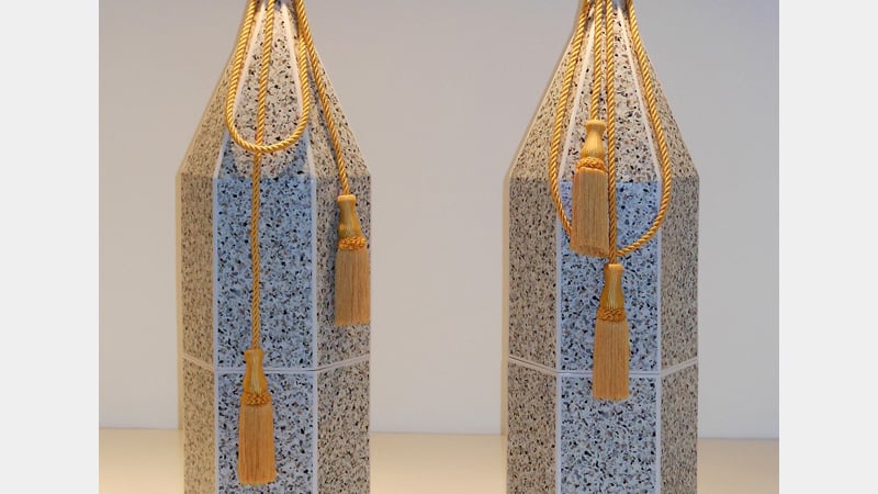 James' interest in bringing together the precious and the mundane also tied in with his interest in the affective power of physical memorials, whether on architectural or intimately domestic scales. Images of medieval reliquaries and other decorative symbols again echoed earlier work focusing on markers of different status: temporary or permanent, porous or resistant, and so on. Considerations of scale and how it functions in relation to the viewer were highlighted throughout - too vast and the work risks being domineering or alienating, too small and the sense of domestic familiarity could be lost. Part of this consideration fed into James' practice of referencing or mimicking interior design, or the colour palettes of home furnishings, often introducing faux materials and veneers like Terrazzo, Lucite and Formica, which succeed in placing the work within the context of everyday stylistic affectation whilst maintaining connections to subtle forms of theatricality.