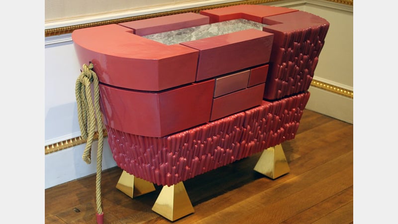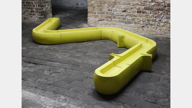 Albeit in radically different forms, ceramics would remain the core element of James' practice. An important influence here came via the skills and experience gained from employment at Lambs Terracotta and Faience, an architectural ceramics company based in Portslade, East Sussex. It was particularly interesting to note how James spoke of the processes by which 'formless' clay is transformed into tangible and, crucially, recognisable forms of cultural significance. The ceramic tradition provided both a visual and processual language - not only in the use of techniques of moulding, finishing, firing, glazing (etc.) but also through a lexicon of architectural conventions that could be adapted, extended or otherwise disrupted. The added influence of industrial design, as well as an incorporation of contemporary manufacturing materials, were accompanied by a fascination for architectural flourishes and signatures of style, decor and cliché. Commenting on an excerpt from a book by William Chambers (an eighteenth century architect best known for designing Somerset House), James likened the contemporary persistence of certain motifs of classical building design (Chambers' illustrations neatly showed a grammatical range of decorative inflections that have emerged over time), as being like a near-dead language, rarely used today except in a wry and arguably non-generative postmodern fashion.