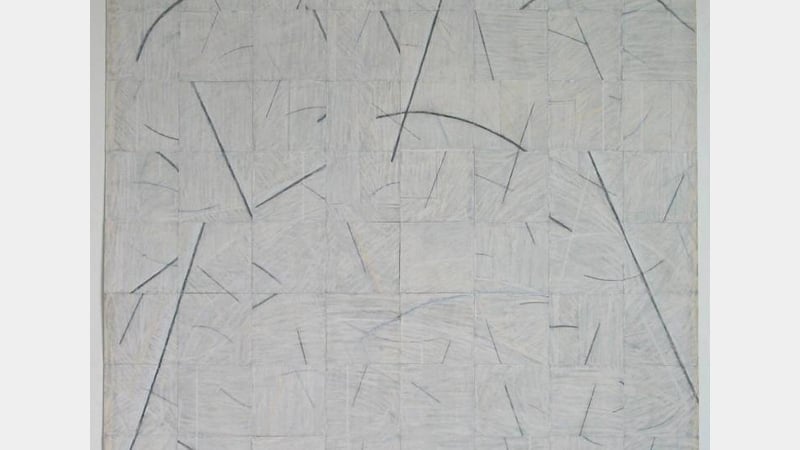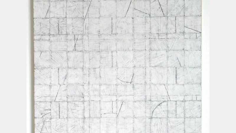 The calligraphic line, so closely associated with writing, is always drawn with the brush in Japan. It is also possible, for the trained eye, to trace the history of the calligraphic mark, identifying its initial point of contact and its removal: each line contains the physical gesture used to draw it out and the informed viewer can read its direction. Crucially, the calligraphic line has no need to appeal to any represented object and can be sustained by its own presence, existing simply as itself: a live line that embodies the physical gesture of the painter, their whole body and breath contained. An appeal to this kind of durational presence is fragmented in Rebecca's canvases, bringing in complex overlays of rhythm and repetition. The series of works that followed - although clearly not disconnected from the developments in Western abstraction, monochrome painting and Minimalism - were, Rebecca insisted, "not an obsession with the grid". Rather, she suggested, what was being encouraged to emerge over the extended period of making such pieces - which involve systematic processes where countless layers are built up, processes of erasure and reduction, scraping away almost as much paint as was applied, using bright colour but then going through systematic processes to 'pacify' it, washing the support through and letting it dry out, working back into it, embracing found marks, drawing out tactile surface qualities, applying countless washes until the surface begins to take on a cumulative luminosity - is the creation of 'place' within a piece of work: a form of receptivity inherent to the material presence of the object-surface of each painting.