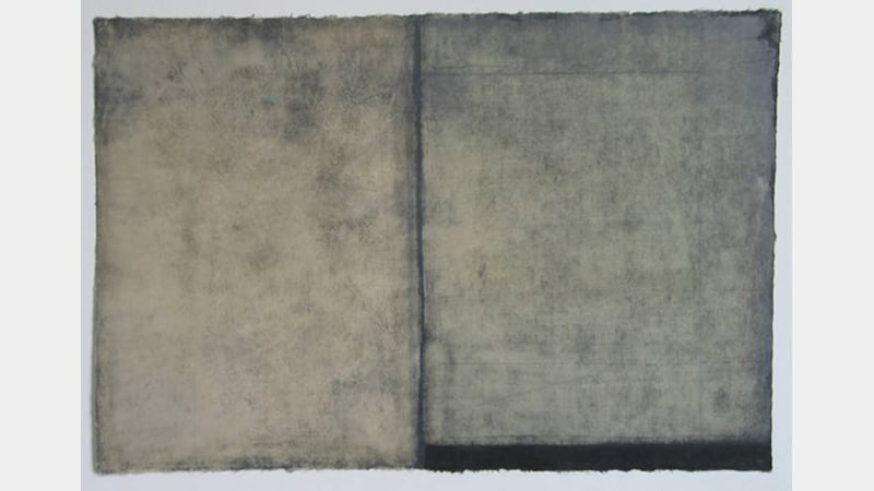 After graduating from Bristol Polytechnic in the late 1970s, Rebecca visited Kyoto as part of a Leverhulme Scholarship. She would stay in Japan for six years. This period would have a huge influence on her life and work, although the nature of that influence would shift. As Rebecca pointed out, a sustained period living outside of one's culture provides its own fundamental insights, particularly in relation to a specific practice like painting, art history in general or recognition of the prevalence of Western culture across the globe. More specific aspects of Japanese and Korean culture would make themselves felt as time went on. Trained as a ceramicist - specialising in Raku ware when in Japan, as well as calligraphy and woodblock printing - Rebecca soon began to make ceramic pieces in which panels of clay became increasingly thin, delicate and paper-like - always with the intention of providing a surface upon which painted marks could be made. This use of such thin clay soon became unsustainable, however, and the sought surface was sought in alternative media and supports. This led to a shift from ceramic pieces to two-dimensional works but, in Rebecca's use of traditional Japanese paper, the flatness of the substrate was not quite straightforward. The most important quality of this paper was its ability to absorb moisture, as any applied liquid and pigment could fully penetrate its internal structure. Most Western paper, made up of short fibres that are for the most part uniformly arranged, has a smooth surface with little foundational strength. Japanese paper, by contrast, is constructed with much longer fibres, agitated together in a gelatinous medium, which results in a much stronger interlocked structure. As a result, the matted texture is less surface than textile, much more like a three-dimensional physical object that its relatively insubstantial Western counterpart.