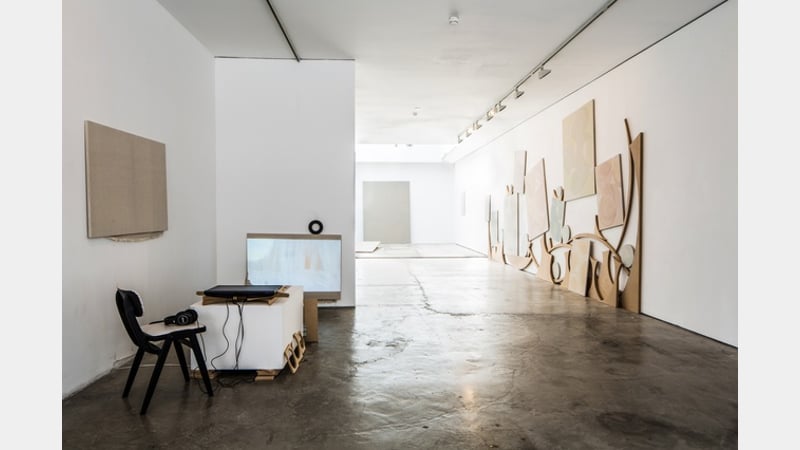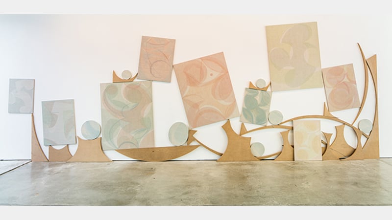 As well as a fascination for contemporary design and the kinds of architectural features to be found everywhere in the built environment that characterises contemporary life, Yelena described how her practice has drawn upon influences of Minimalism and Russian Constructivism. When discussing her enduring fascination with curvilinear composition, she spoke about the impact on technology on the relative visual prominence of geometric forms - for example, the late appearance of the oval in much industrial design, after having 'waited' until computer software could reliably (re)create them.Another theme of the work concerned the conventions of the museum and art gallery, especially their modes of display, extends to an interest in the materials and forms involved in the packing and distribution of artworks: the language of art handling, the sculptural presence of crates and cases, all tied in with ideas about how the 'collector' can be embodied not only in the material artefacts and images that make up their collections, but also the logistical paraphernalia that comes with them.