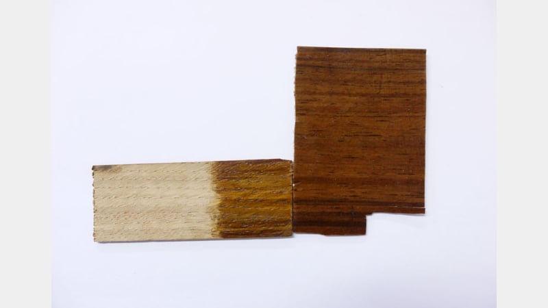 Having understood how to generate specific colours, we then proceeded with attempts to colour match various stained wood and veneer slices that we had brought along to experiment with.