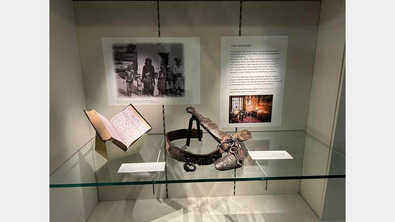 In October 2023, four objects were selected as a case study to further the Whose Heritage? Project in its process of decolonising the James Family Collection. Three daggers and an axe were identified to be from the Middle East, likely purchases from Frank James during his journey on the Lancashire Witch. The purpose of this case study was to re-evaluate the perceptions of the ethnographic objects in West Dean’s collection, transforming the passive view of a trophy object on the wall of the Oak Hall, to an object that can reflect its ascribed values and its cultural origins.