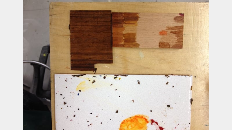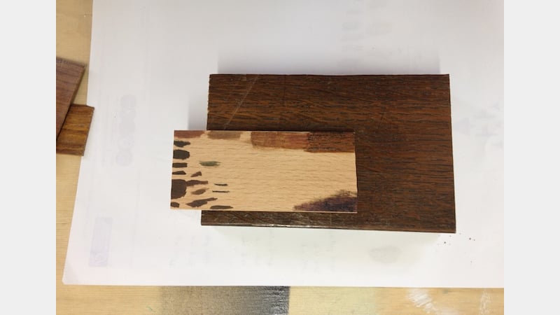 Having understood how to generate specific colours, we then proceeded with attempts to colour match various stained wood and veneer slices that we had brought along to the workshop.