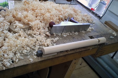 Our first assignment in the West Dean furniture conservation program: hand-plane a square piece of wood into a tapered column, break it, and put it back together.