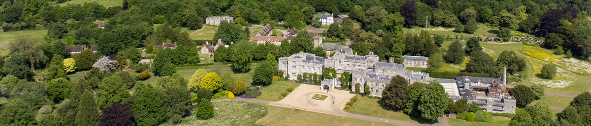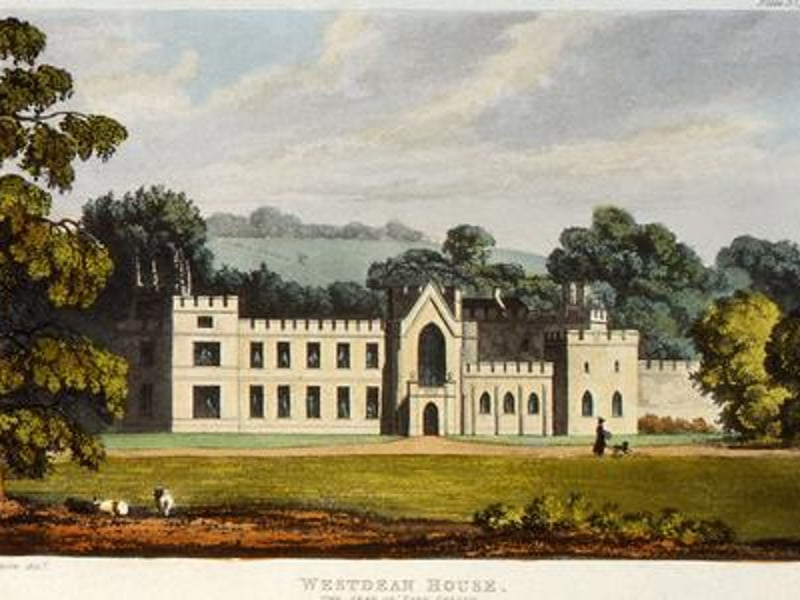 Though West Dean is mentioned in the Domesday book as a hunting ground, Richard Lewknor (c. 1589 - 27 May 1635) built the first significant house here in the 1620s, next to the medieval village church. In 1738, Sir John Peachey (c. 1680 - 1744) acquired the West Dean estate. It was then inherited by Sir James Peachey (1723 - 1808), a courtier and confidant of George III who made him Lord Selsey in 1794. A peerage required a grander house, so in the early 19th century architect James Wyatt designed a suite of grand rooms and tall towers to give West Dean the appearance of a castle, thereby creating one of the largest flint-faced buildings in the country. The gardens were also enlarged at this time, and the park was laid out.