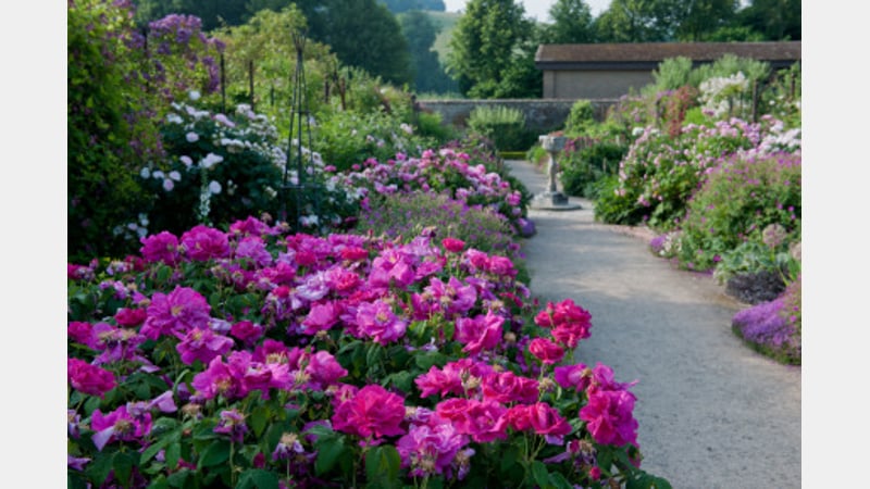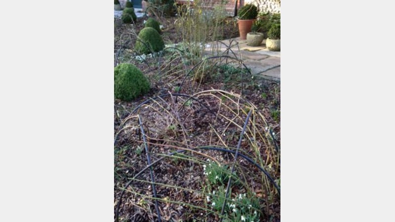 My solution has been a semi-bonsai effect through training into a thorny woven basket of plaited stems. These are tied down to a structure of five low semi-elliptical mild steel rod hoops, interwoven to form loose circles of about 1.25m diameter. Fortunately most of the roses bushes have pretty pliable stems that lend themselves to this treatment and the net effect in the flowering season is to produce flowery domes that strut their stuff at about one, rather than two, metres. Once again this gives the best of both worlds, masses of fragrant blossom that I can still see over to enjoy the rest of the garden. The Gardeners' Cottage is a member of the National Gardening Scheme so you can drop in see my efforts for yourself.