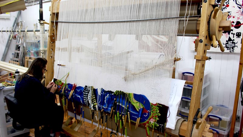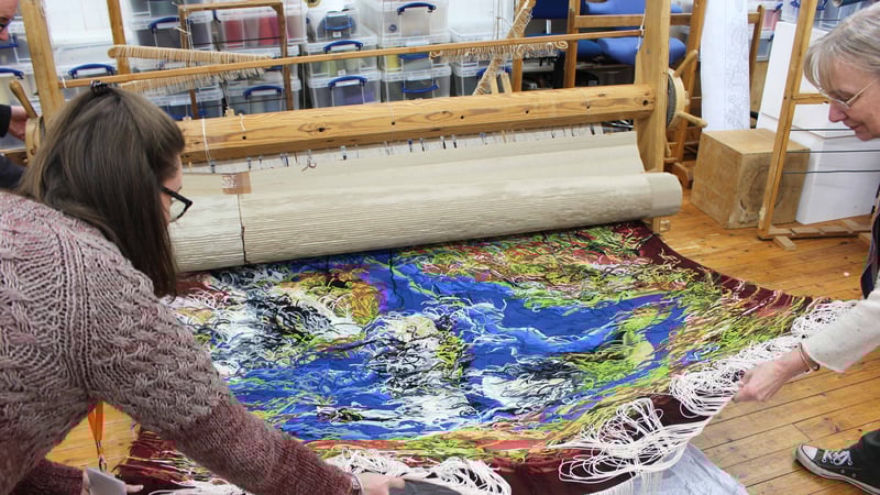 The Tapestry Studio at West Dean College of Arts and Conservation is based near Chichester in West Sussex and is the one of the only professional studios in the UK. It has been working with contemporary artists and designers to translate their images into woven tapestry since 1976. Since weaving 23 tapestries for The Henry Moore Foundation, 1976 - 1987, the Studio has worked with artists including John Piper, Howard Hodgkin, Eileen Agar, Matty Grunberg, Philip Sutton, Bill Jacklin and Adrian Berg. More recent projects include The Fallowfield (now in the Tate Collection) and Rings of Saturn with Eva Rothschild for Blue Mountain School, and work with Martin Creed on Work No.1683 for What's the point of it? at the Hayward Gallery. As well as artists, the Tapestry Studio has produced work for clients including the Houses of Parliament, The Mercers Company, White Cube and Great Ormond Street Hospital. It has extensive experience of heritage tapestry projects, including The Hunt of the Unicorn, a series of seven tapestries based on 15th century originals commissioned by Historic Scotland. This was the biggest weaving project undertaken in the UK for 100 years, involved 18 international weavers and took 13 years to complete in 2015.