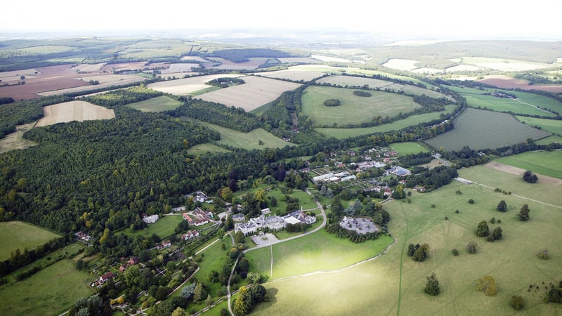 - Image captions 1) West Dean College, front elevation 2) West Dean Estate, aerial view 3) West Dean Gardens, Victorian glasshouses