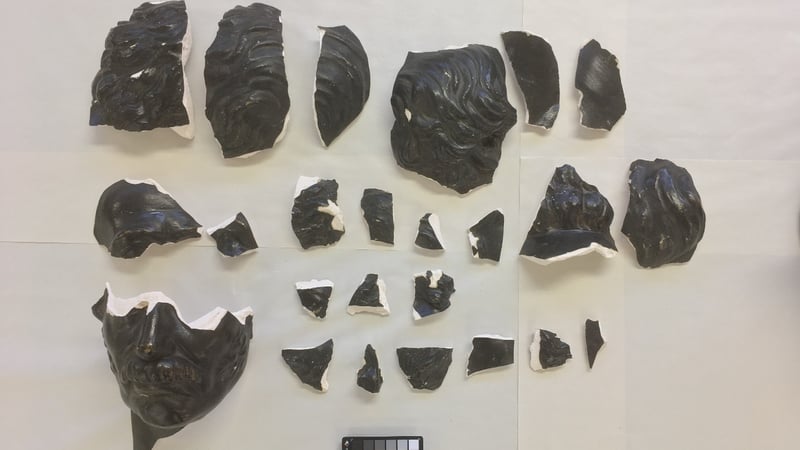 Arriving in multiple pieces, the large and heavy bust, which measures 58.5cm in height and 33cm in width, was broken in numerous fragments that could be grouped into three sections: the lower section consisted of the base or plinth; the middle section is the ‘chest’ and the top section includes the head and neck. The top section, which had the most damage, was in approximately 24 sections, while the middle section (chest) was detached from the plinth (lower section).