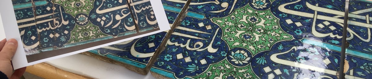 She finished by saying: "One object that I have been able to work on is a set of three Fritware tiles with Persian inscriptions and floral ornaments from the 14th century. As the tiles will be photographed for an upcoming publication they were brought in for conservation due to one of the tiles having previous repairs that had discoloured. The treatment I performed involved: surface cleaning, recessing the previous fills, consolidating weak areas of glaze, refilling areas of loss, retouching fill areas and rewriting the museum numbers. I particularly enjoyed working on this object as I find previous repairs fascinating because they provide so much information about an object's history."