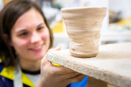 Philippa Clarke in art studio at West Dean College of Arts and Conservation