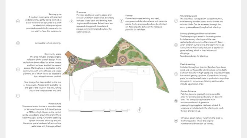 The public garden at the London Museum of Water and Steam was an interesting shaped site and one that needed to be carefully considered to be able to maintain its heritage as well as be attractive for today’s visitors. The design addresses the needs of a wide range of visitors, from families to regular community groups; to consider such a wide variety of needs for a design made this incredibly special to work on. The space allows people, whatever their age or physical ability, to be outdoors together, to play, interact and enjoy time together in a safe space. Having interacted with children and adults with additional needs and disabilities to be able to bring something into this garden for them was a pleasure and something I believe was executed well in the design: flexible seating, accessibility, sensory gardening, a community hub and being a safe space all contribute towards this.