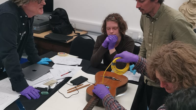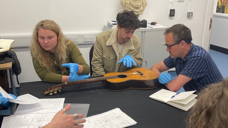 Students had the opportunity to analyse and handle historic musical instruments kept in the Museum; including an English bass viol from the early 17th century and an English guitar from the early 19th century.