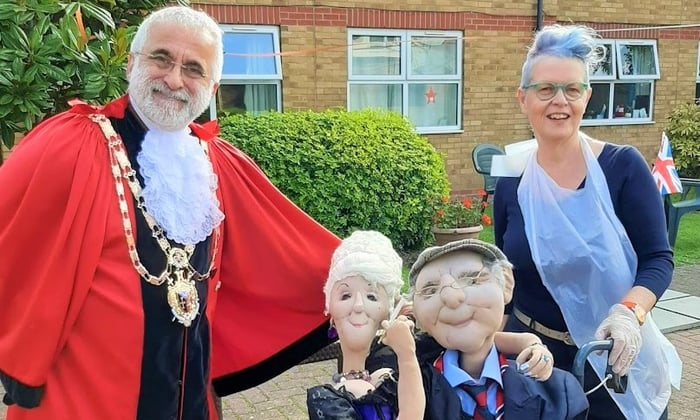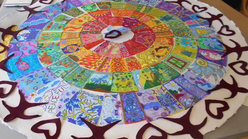 A programme of care home visiting with 2 local mayors. A community mandala created by cancer patients and carers at a local cancer charity. Maintenence of 14 mandalas I installed in the chemo unit of the local hospital. Creating topical installations on the roof of a Thames barge, home to a mental health charity.