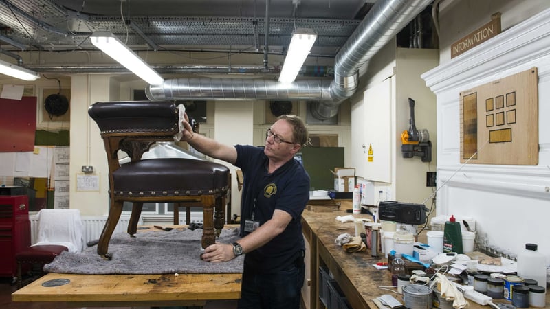 Generally though, using old traditional skills such as staining, colouring, reviving, polishing and waxing, these are just a few of the skills in the arsenal of a French Polisher, so it’s the restoration of all woodwork in the palace including POW work, which is the Pugin designed furniture, fittings, panelling and more. Restoration of all the damaged wooden goods that makes it all worth while. From the terrace, corridors, The Lords or The Commons, the predominantly oak work gets a daily battering as it’s still a working environment even though it’s of great importance and a grade one listed building and a world heritage site, along with the world's most famous clock.