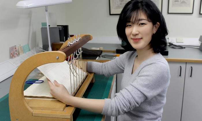 The breadth and diversity of the collections means that I have had the chance to work on a great range of objects from 15th century parchment manuscripts to maps, letters, archival documents and leather bound books. I've also participated in on-site preservation projects for some of the libraries.