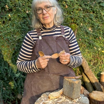 Having originally trained in fine art, Deborah became addicted to spoon carving (she’s a spoon a day type!) after a long career as an artist and a writer of craft books.