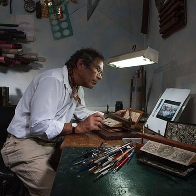 Gain a basic technique introduction to the traditional, British form of book decoration known as vanishing fore-edge painting.