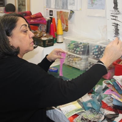 Amarjeet Nandhra is a practising artist, working with print, mixed media and stitch. Trained in Graphic Communication, later gaining a BA in Creative Arts. She has also worked as an Art Director on various independent short films. As a freelance tutor she has taught a range of courses; printmaking, mixed media and textiles in the UK and Spain.