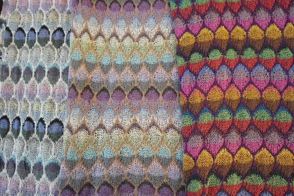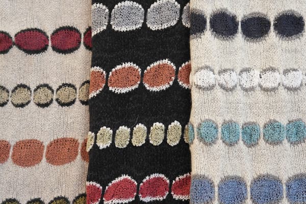 Alison's aim is to make a work of art to wear. Cashmere, silk and Donegal wool threads are juxtaposed through stitch choice to create layers of texture and jewel colours to sing together.