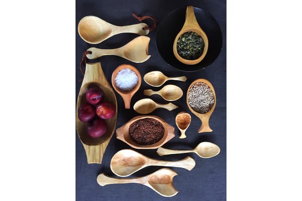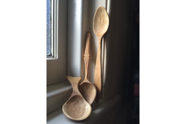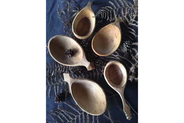 Andrew makes hand carved wooden bowls and spoons. He started whittling spoons and bowls simply for relaxation, switch off “me” time, looking for a creative escape in an increasingly digital world. Design is driven by the materials and tools he uses. Andrew draws inspiration from a talented community of green woodworkers but spoons, bowls and kuksas must be primarily functional.