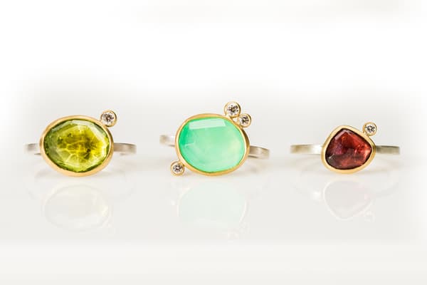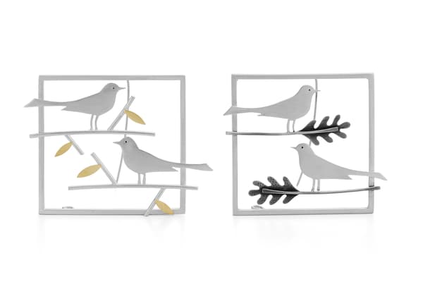 Laura Baxter makes precious jewellery, metal wall pieces and silverware inspired by botanical forms, gardening and bird life. Twigs, buds, blossom and birds are stylised to create graphic silhouettes of nature. The intention of her work is to create pieces which capture the essence and beauty of plant and bird life. New work for 2017 takes Laura’s aesthetic in a different direction featuring elegant rings, pendants and brooches using natural rose cut diamonds, olive green tourmalines and sapphires. Designs are handmade as one-off unique crafted pieces and in limited edition collections.